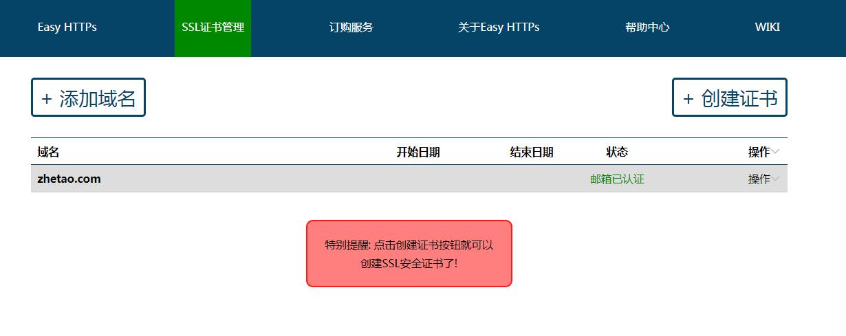 1、用户只需要填写域名,即可一键式生成Let 's Encrypt 证书,时间只需三到五分钟即可生成并完成下载。
