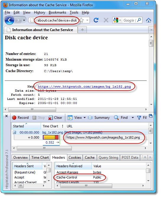 Firefox默认只在内存中缓存HTTPS。但是,只要头命令中有Cache-Control:Public,缓存就会被写到硬盘上。下面的图片显示,Firefox的硬盘缓存中有HTTPS内容,头命令正是Cache-Control:Public。